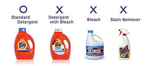 漂白剤や染み抜き剤は絶対に使用しないでください。