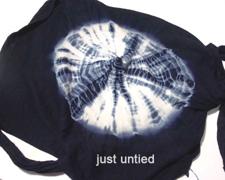 Three Makiage-Shibori(rolling up tie dye) are scattered.